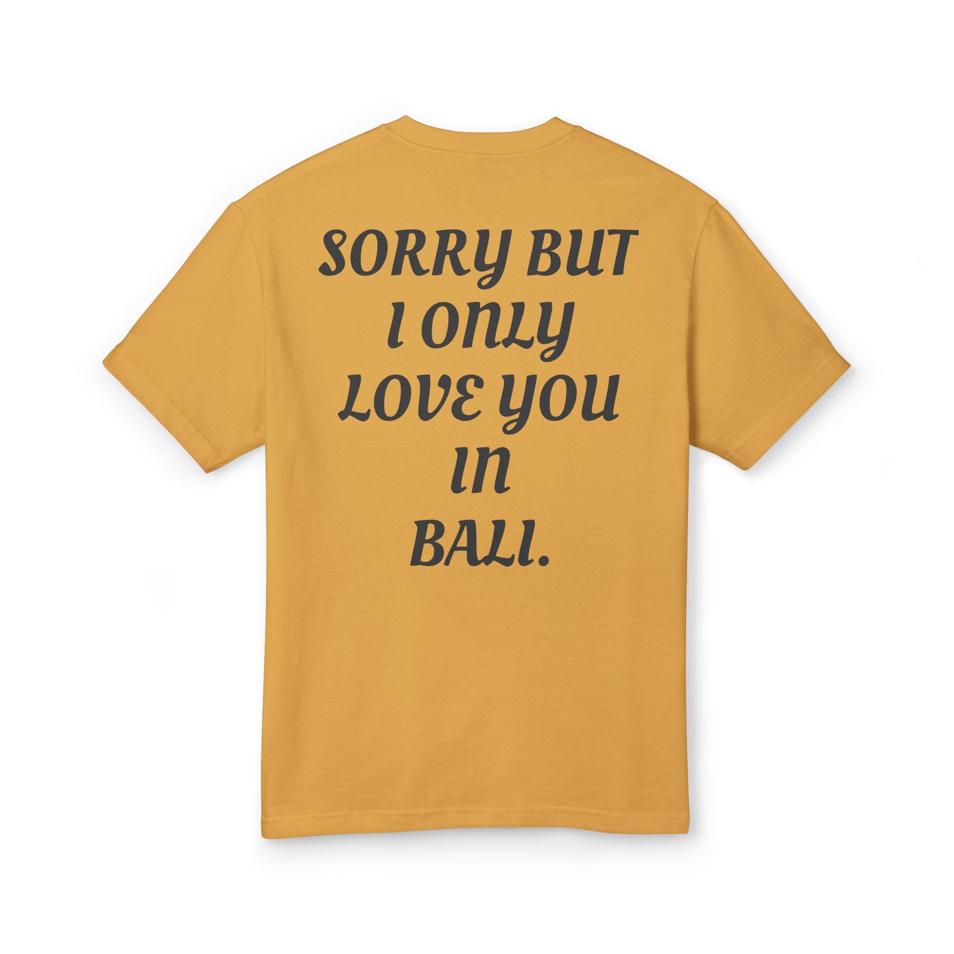 The "SORRY BUT I ONLY LOVE YOU IN BALI" tee brings vacation energy wherever you are -
